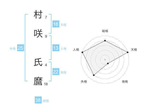 村咲 氏麿さんを姓名の画数から五運を鑑定