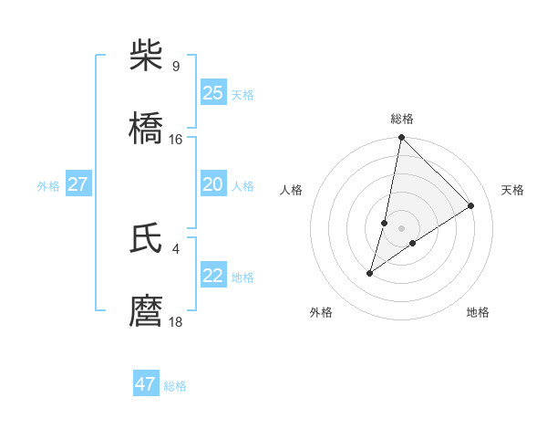 柴橋 氏麿さんの総格は47画の5点!