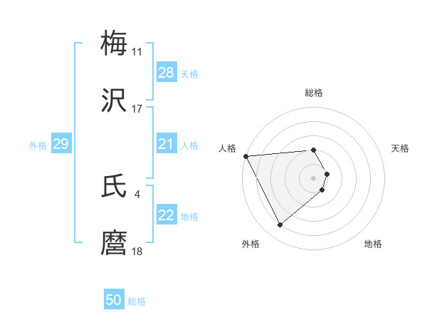 梅沢 氏麿さんの総格は50画の2点!