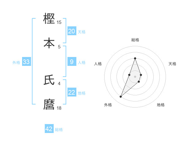 樫本 氏麿さんの総格は42画の3点!