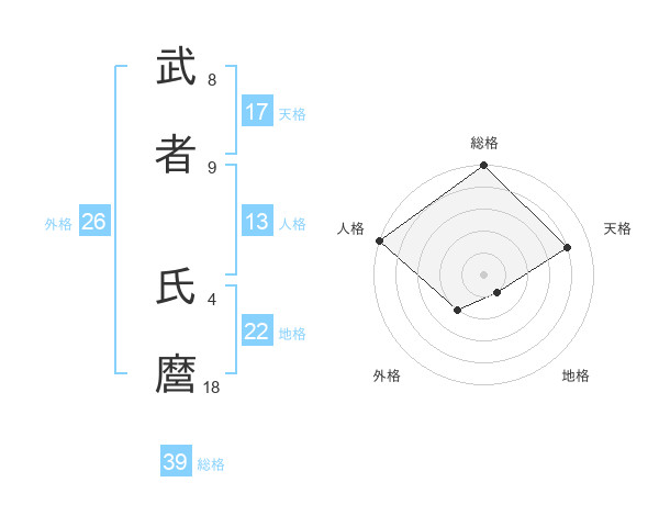 武者 氏麿さんの総格は39画の5点!