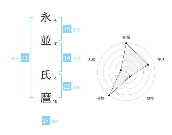 永並 氏麿さんの総格は37画の5点!