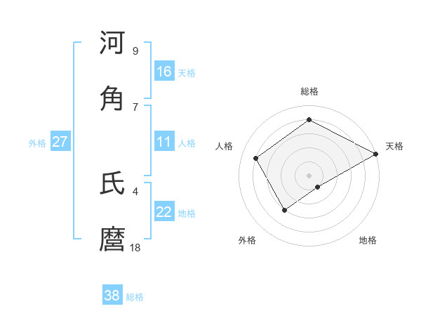 河角 氏麿さんを姓名の画数から五運を鑑定