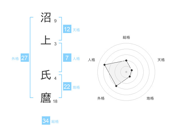 沼上 氏麿さんの天格は12画の1点!