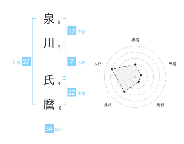 泉川 氏麿さんを姓名の画数から五運を鑑定