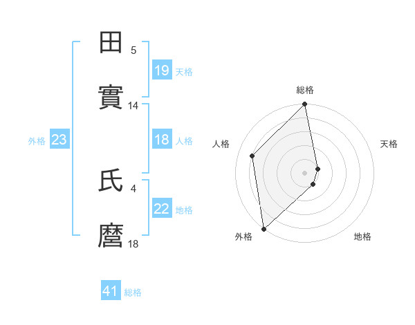 田實 氏麿さんの総格は41画の5点!