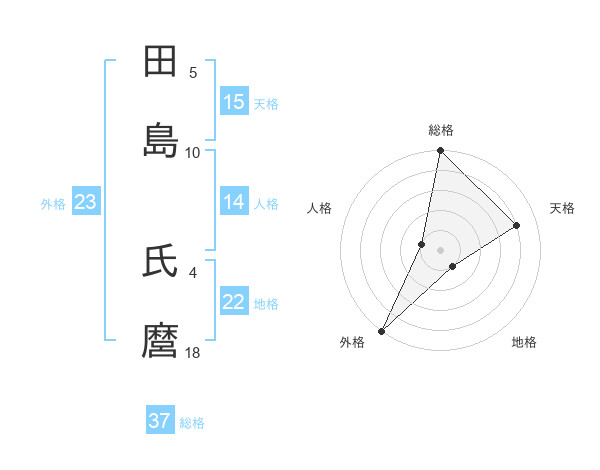 田島 氏麿さんの総格は37画の5点!