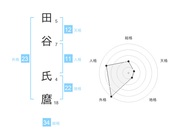 田谷 氏麿さんの外格は23画の5点!