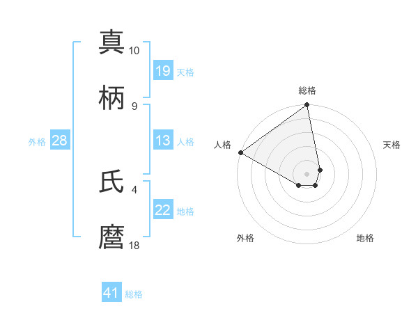 真柄 氏麿さんの総格は41画の5点!