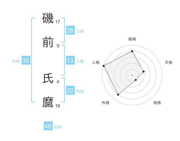 磯前 氏麿さんを姓名の画数から五運を鑑定