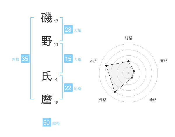 磯野 氏麿さんの総格は50画の2点!