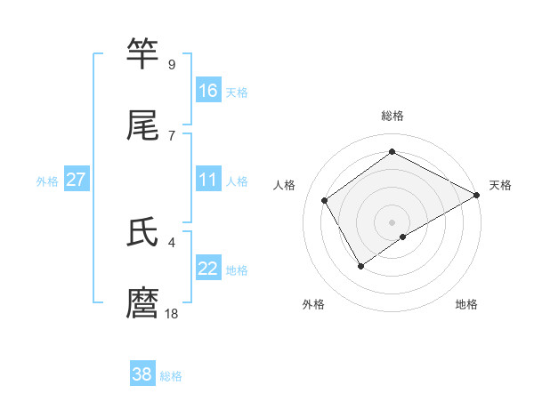 竿尾 氏麿さんを姓名の画数から五運を鑑定