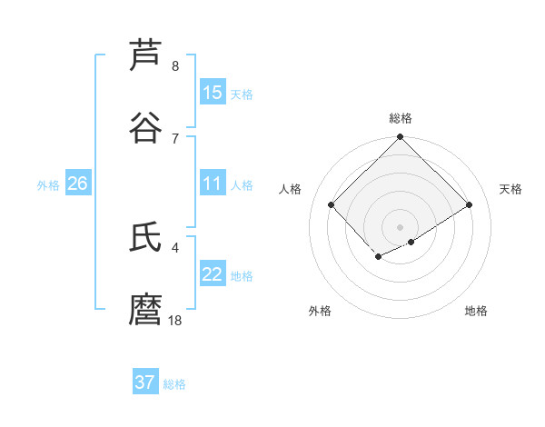 芦谷 氏麿さんの総格は37画の5点!