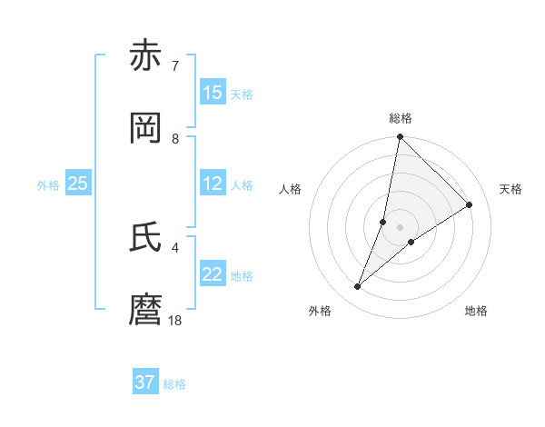 赤岡 氏麿さんを姓名の画数から五運を鑑定
