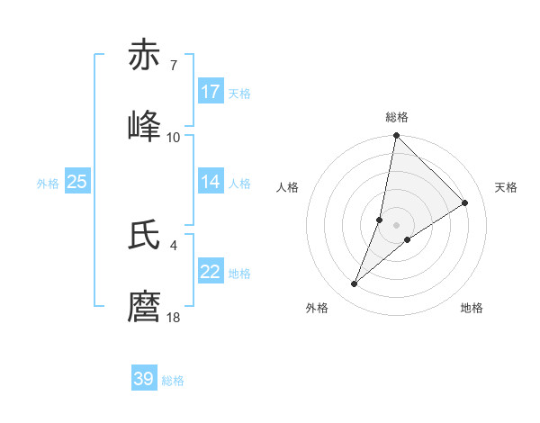 赤峰 氏麿さんの総格は39画の5点!
