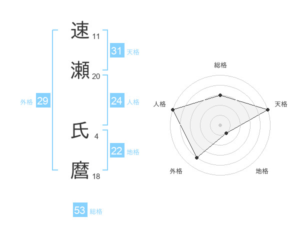 速瀬 氏麿さんの天格は31画の5点!