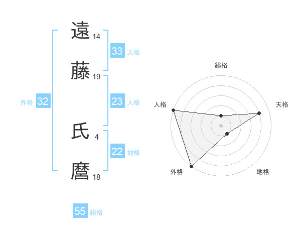 遠藤 氏麿さんの総格は55画の1点!