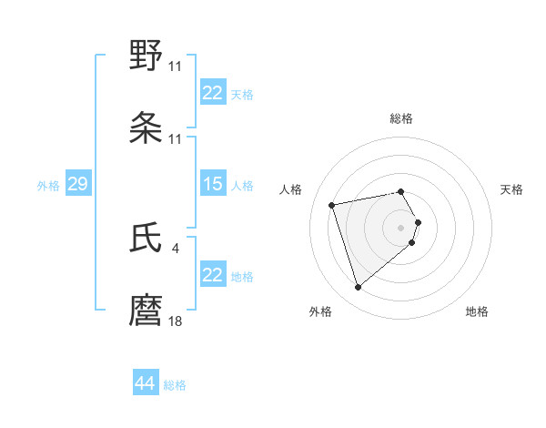野条 氏麿さんの天格は22画の1点!