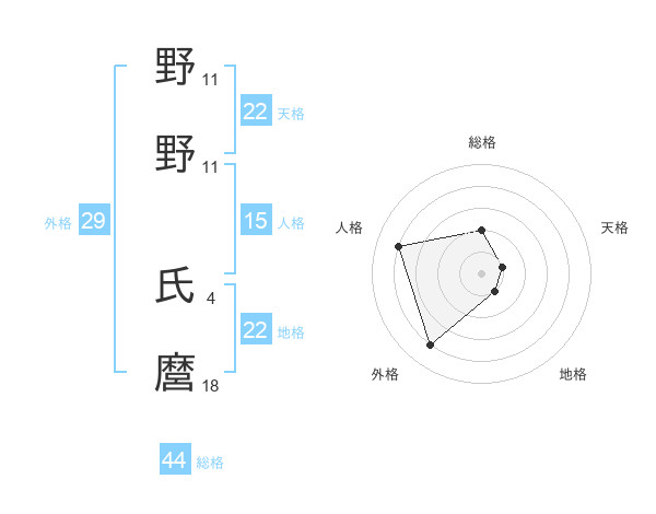 野野 氏麿さんの総格は44画の2点!