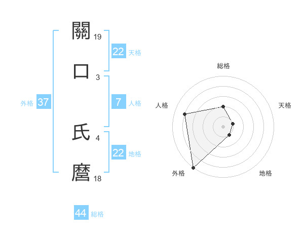 關口 氏麿さんの天格は22画の1点!
