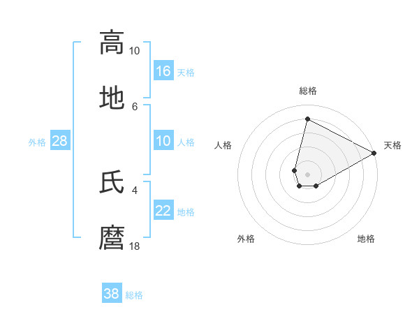 高地 氏麿さんの総格は38画の4点!