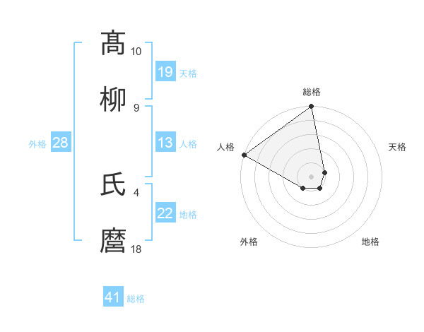 髙柳 氏麿さんの総格は41画の5点!