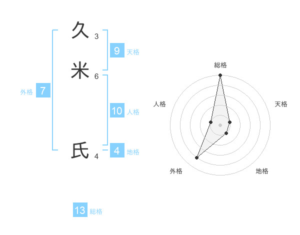 久米 氏さんの総格は13画の5点!