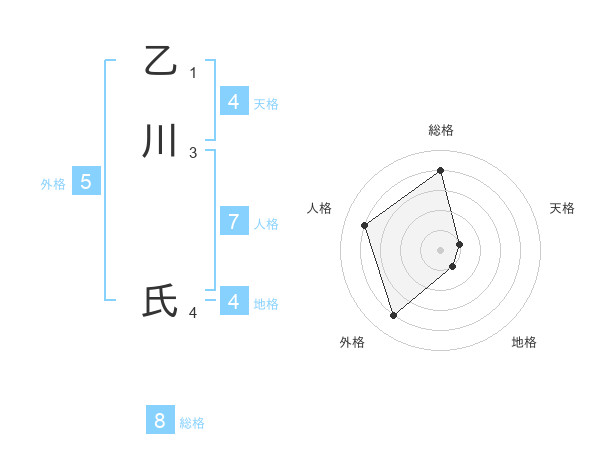 乙川 氏さんの総格は8画の4点!