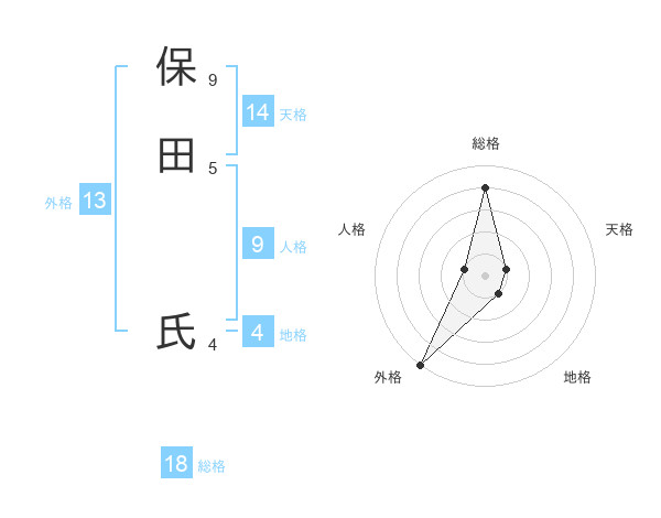 保田 氏さんの外格は13画の5点!