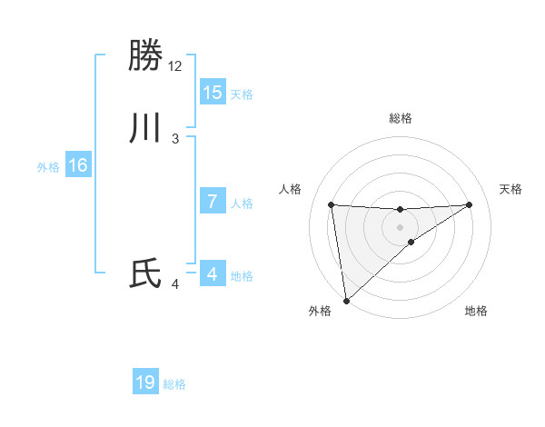 勝川 氏さんの天格は15画の4点!