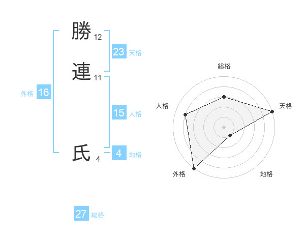 勝連 氏さんの総格は27画の3点!