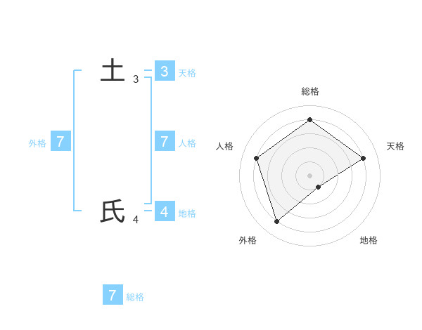 土 氏さんの総格は7画の4点!