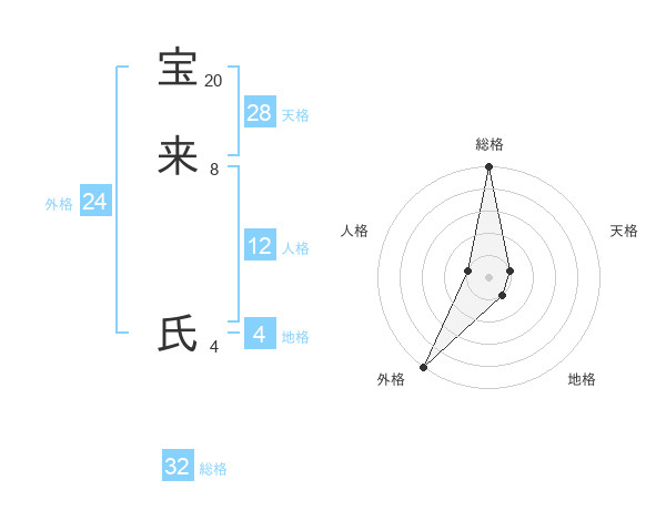 宝来 氏さんの総格は32画の5点!