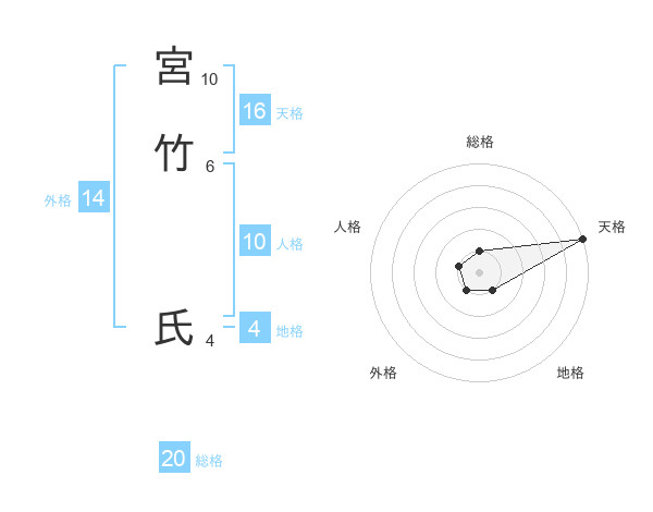 宮竹 氏さんの総格は20画の1点!