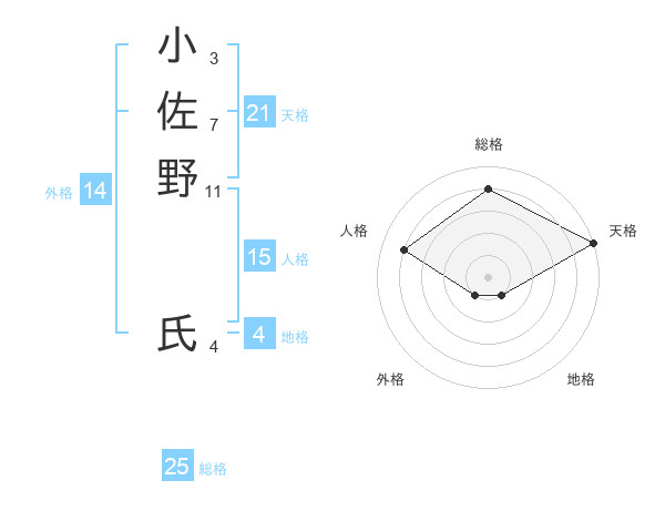 小佐野 氏さんを姓名の画数から五運を鑑定