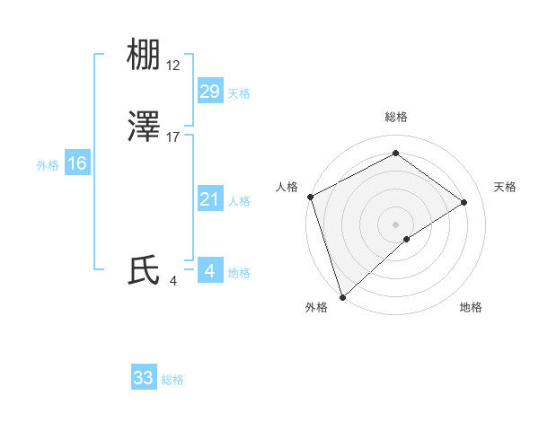 棚澤 氏さんを姓名の画数から五運を鑑定