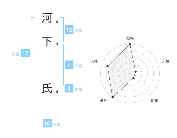 河下 氏さんの総格は16画の5点!