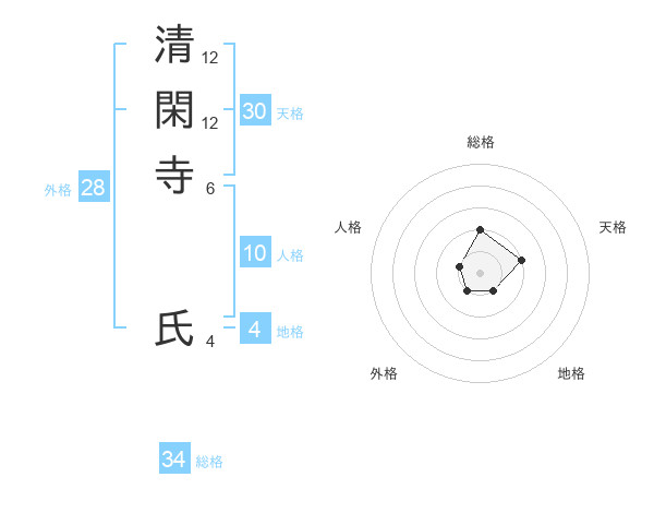 清閑寺 氏さんの総格は34画の2点!