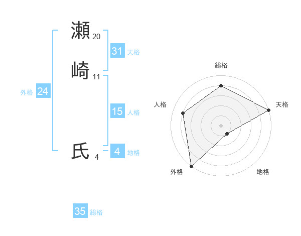 瀬崎 氏さんを姓名の画数から五運を鑑定
