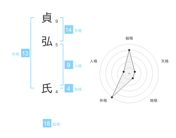 貞弘 氏さんの総格は18画の4点!