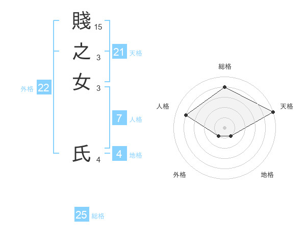 賤之女 氏さんの総格は25画の4点!
