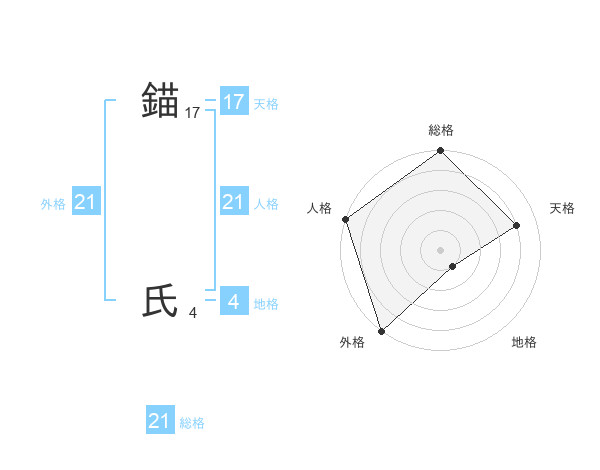 錨 氏さんの総格は21画の5点!