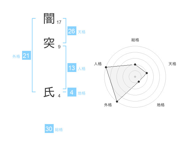 闇突 氏さんの総格は30画の2点!