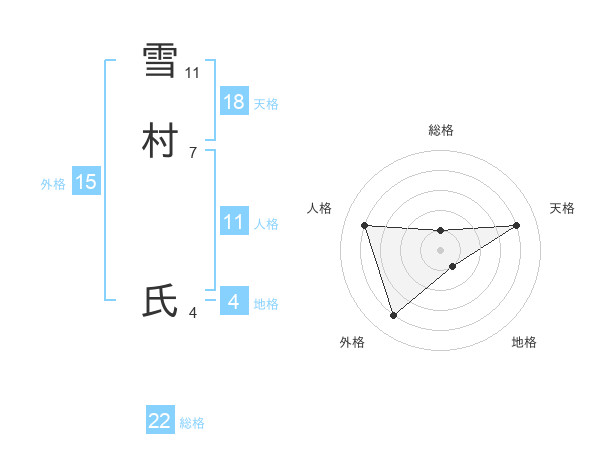 雪村 氏さんの総格は22画の1点!