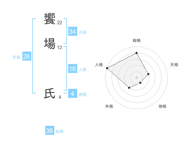 饗場 氏さんの総格は38画の4点!