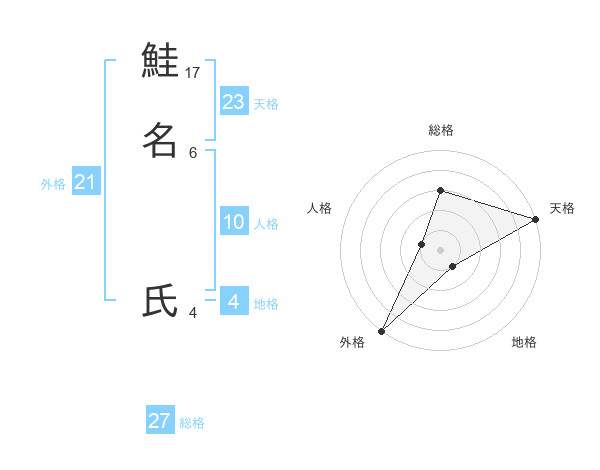 鮭名 氏さんの総格は27画の3点!