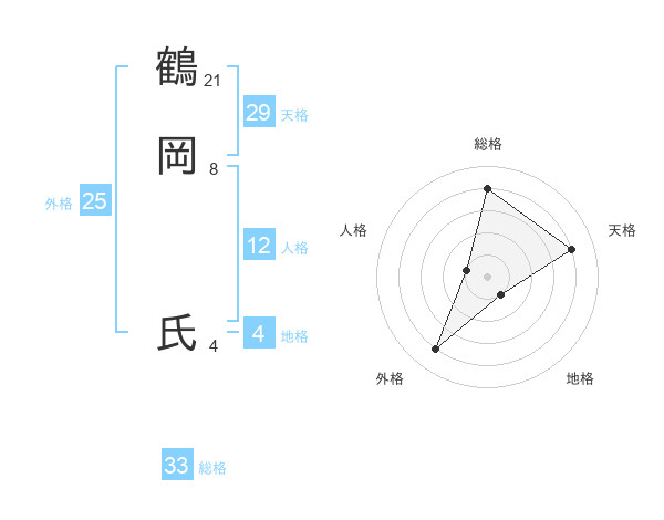 鶴岡 氏さんを姓名の画数から五運を鑑定