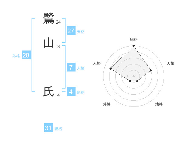 鷺山 氏さんの総格は31画の5点!