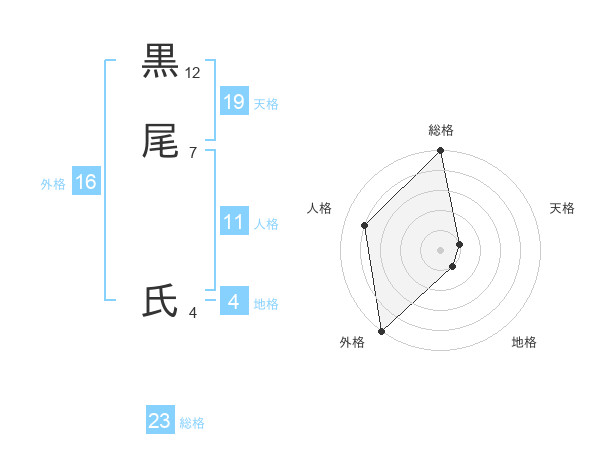 黒尾 氏さんの外格は16画の5点!