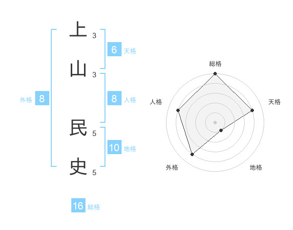 上山 民史さんの総格は16画の5点!